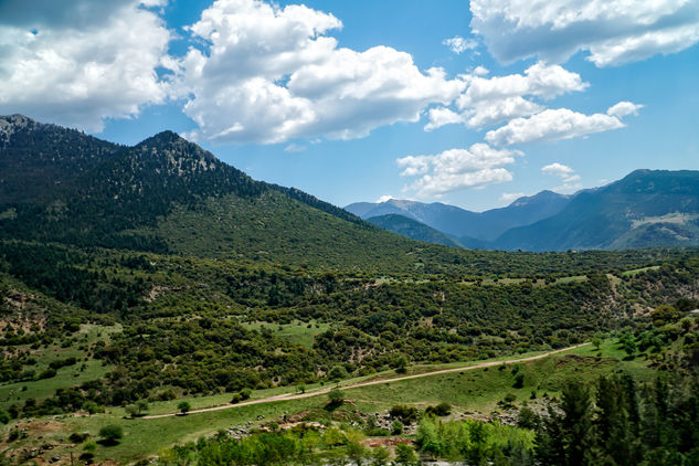 After our restful night in Delphi (and a delicious meal cooked for us by the hotel), we hit the road again for some more thrilling turns through gorgeous, mountainous countryside stretching out under blue skies. It was truly a feast for this photography-lover's eyes. We traded our bus for a train that took us through rock walls and caves and past waterfalls to the small town of Kalavryta.