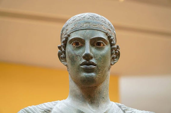 Our group stopped first at the Archeological Museum of Delphi, where we had a wonderful tour of the most important artifacts. This museum contained a collection of items found when Delphi was being excavated, and it was fascinating. Our local guide, Penny, for this stop was passionate and highly educated in her subject matter, and with her words she painted a picture of us of what life would have been like when Delphi was in use. We really love how Rick Steves' manages to recruit the brightest and most passionate guides around. They weave these incredible tales that bring history to life! I would have paid much closer attention to history in school with teachers like this!