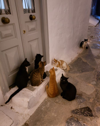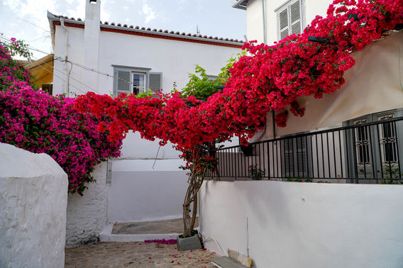 We took a ferry to Hydra where we unloaded and walked as a group to our hotels through the winding, cobblestoned streets of Hydra. There are no cars allowed on this island, and the locals still use donkeys to transport goods, which lends a lot to the peaceful, quaint feel of the place. We had lunch at a little place near our hotel and then wandered through the lanes, admiring the architecture, the flowers, and the plethora of local stray cats wandering the streets. We had no real agenda, so I will let the photos speak for themselves.