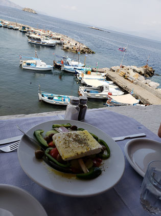 Upon our return to town, we did a little souvenir shopping and then found a bench to watch the sunset. We finished off with a wonderful dinner in a place David W. had suggested for us where we indulged on stuffed grape leaves and lentils. It was another perfect Greek day! It is hard to believe our trip is coming to an end!